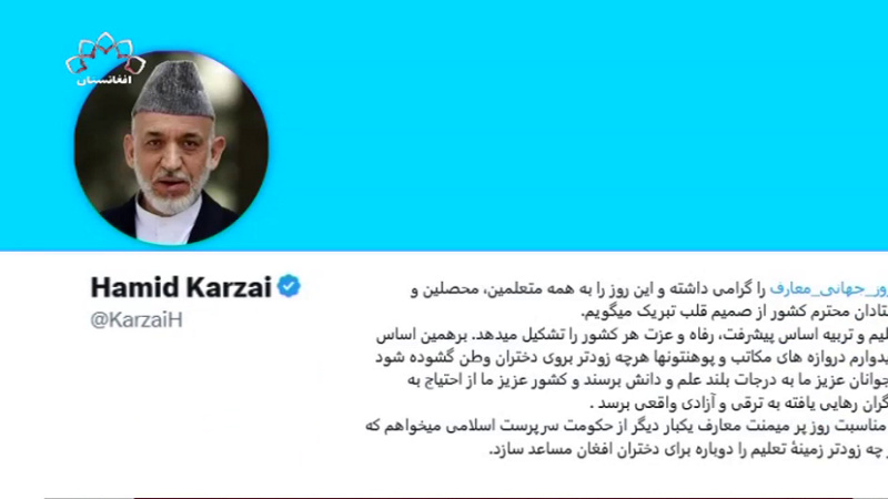 حامد کرزی رییس جمهوری سابق افغانستان به مناسبت روز جهانی آموزش، خواستار بازگشایی دروازه مکاتب و دانشگاهها به روی دختران شده است.