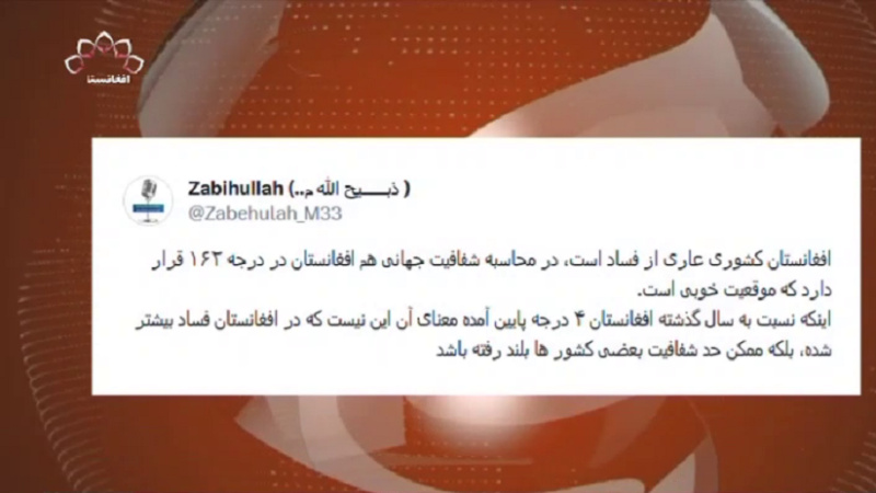 سخنگوی حکومت سرپرست در واکنش به گزارش اخیر سازمان شفافیت بین الملل گفته است که سقوط چند رتبه ای افغانستان در جایگاه فساد مالی، به مفهوم فساد بیشتر در این کشور نیست.