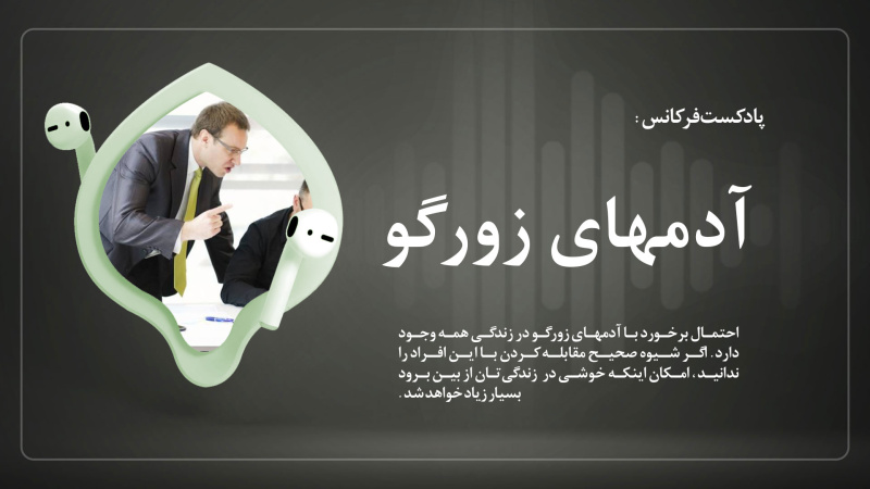 مواجهه با افراد زورگو اصلا خوشایند نیست. احتمال برخورد با چنین شخصیتهایی در زندگی همه وجود دارد. اگر شیوه صحیح مقابله کردن با این افراد را ندانیم، امکان اینکه خوشی از زندگیمان رخت بربندند بسیار زیاد خواهد شد. در این پادکست از روشهایی برای مبارزه و مقابله با افراد زورگو برایتان گفتهایم.