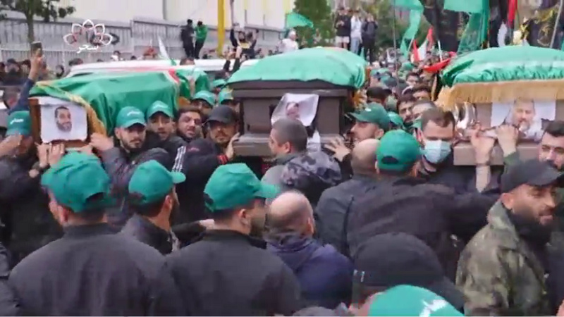 مراسم تشییع پیکر شهید صالح العاروری معاون رییس دفتر سیاسی حماس و یارانش با حضور هزاران نفر در بیروت برگزار شد.
