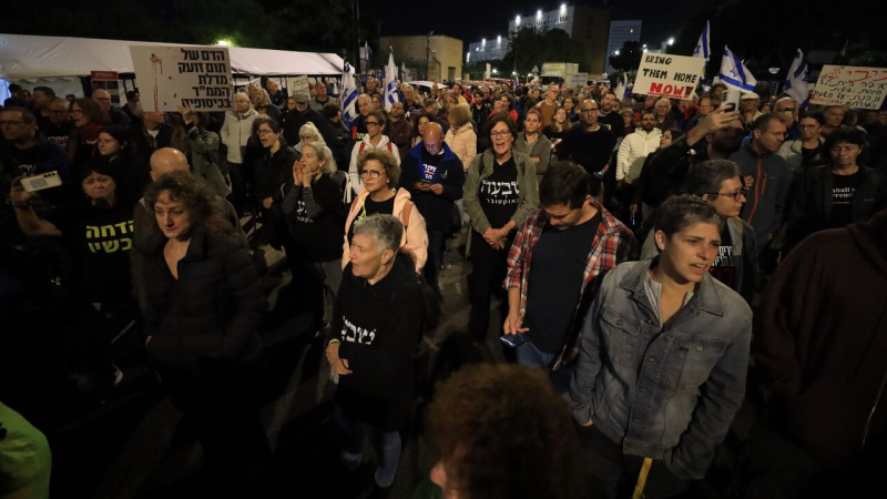 تجمع اعتراضی خانواده اسیران صهیونیست مقابل خانه نتانیاهو