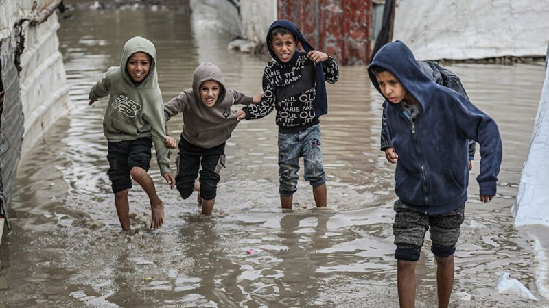 په غزه کې د درنو بارانونو اورېدو سره بشري وضعیت بې ساري کچې ته خراب شوی دی، حماس راپور ورکړی چې د لسګونو زرو کډوالو خیمې ډوب شوي او د تلفاتو شمېر لوړ شوی دی.
